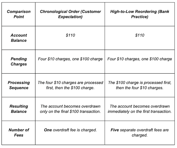 For example, if a customer makes four small purchases of $10 each and one large purchase of $100, but only has $110 in their account, a bank might process the $100 charge first, immediately overdrawing the account. This then triggers four separate overdraft fees for the remaining $10 purchases, despite the customer having enough money for the small transactions. This kind of algorithmic fee generation, which can turn a single oversight into hundreds of dollars in charges, is at the heart of many of these legal battles.
